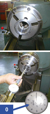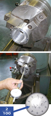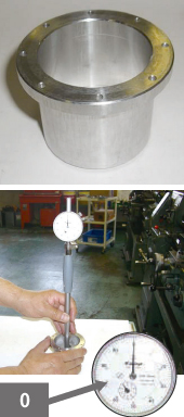 計測前、製品が歪んでないことを確認し『円型生爪』と『角爪』のアルミ円筒品加工の度合いを測ってみました。