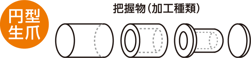 円型生爪は120°の扇状のため、把握物が大きくなっても把握幅が一定の大きさを保ち、歪みの発生を抑えることができます。