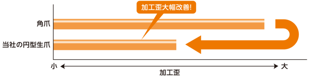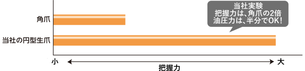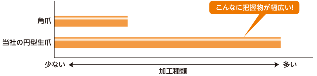 角生爪の場合は把握物が大きくなると、把握幅の割合が小さくなるため、歪みが発生します。加工特性からいくと角生爪はベストじゃないですよね!